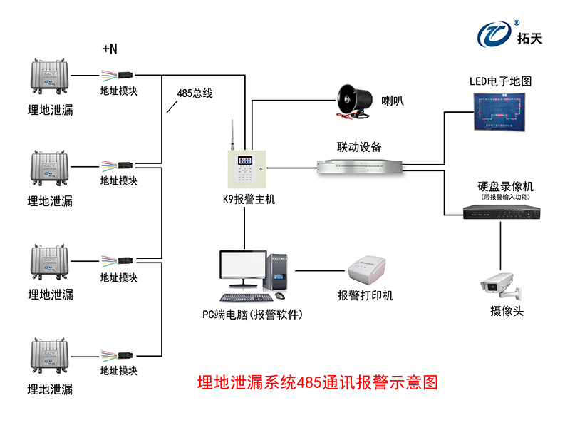 K9鍵盤主機485通訊示意圖